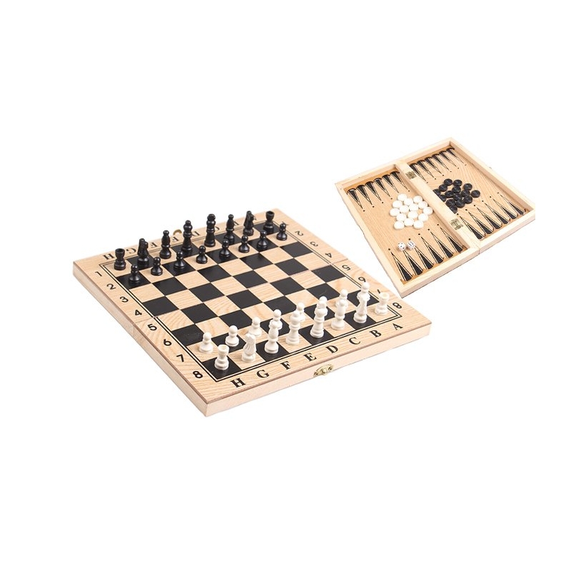 Dřevěná šachová sada 3v1
