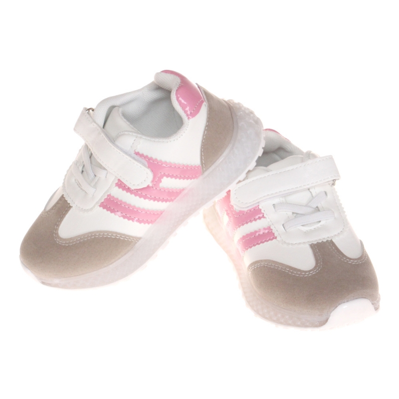 Dětské tenisky svítící se špičkou pruhy růžové