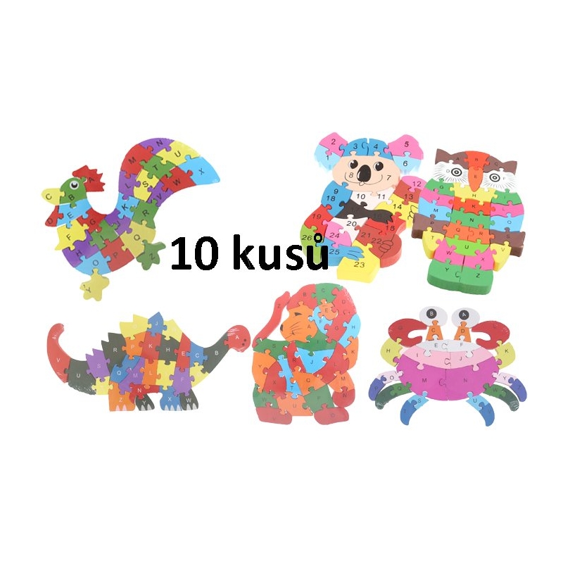 Vzdělávací dřevěné puzzle mix 10ks