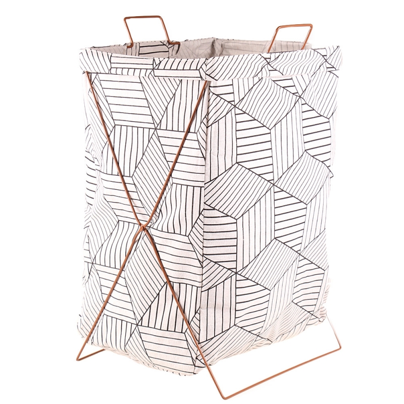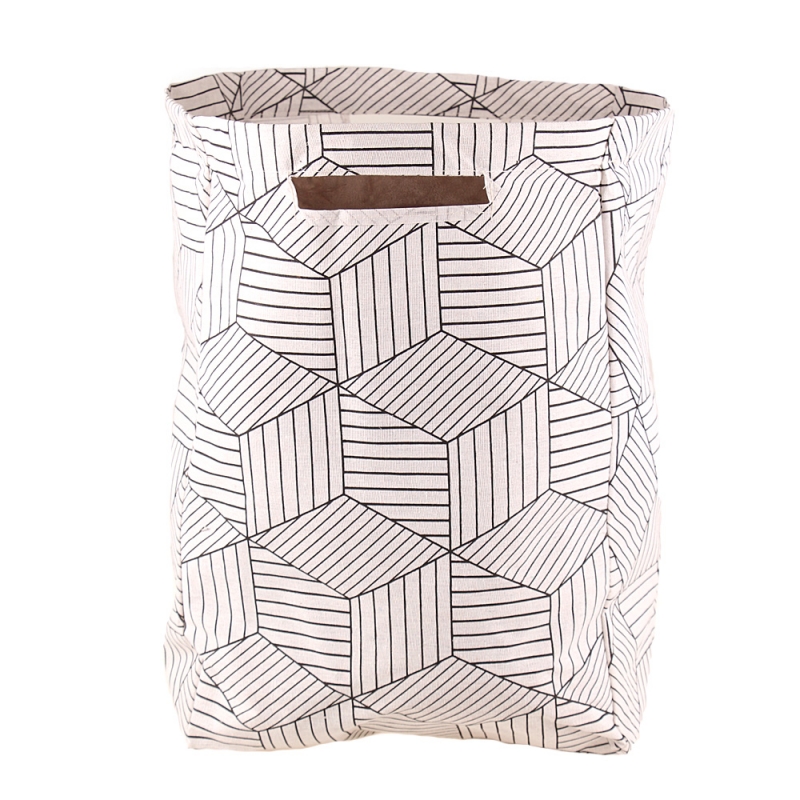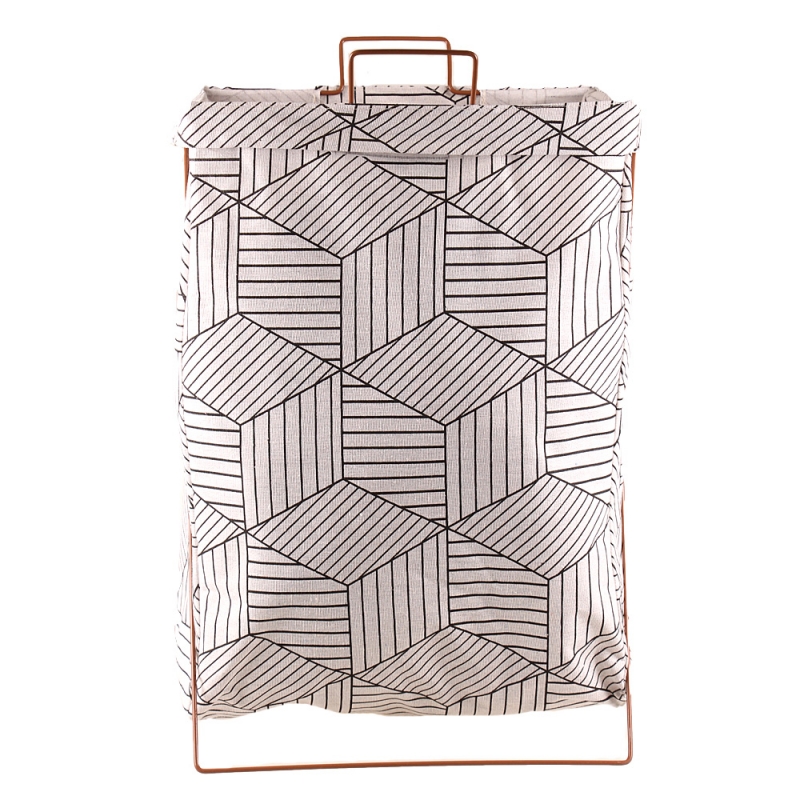 Plátěný koš na prádlo se stojanem geometrický vzor bílý