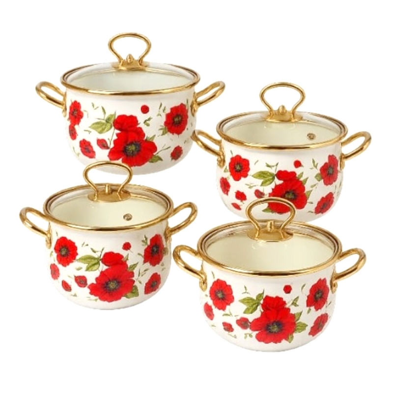 8-dílná sada smaltovaných hrnců červený mák
