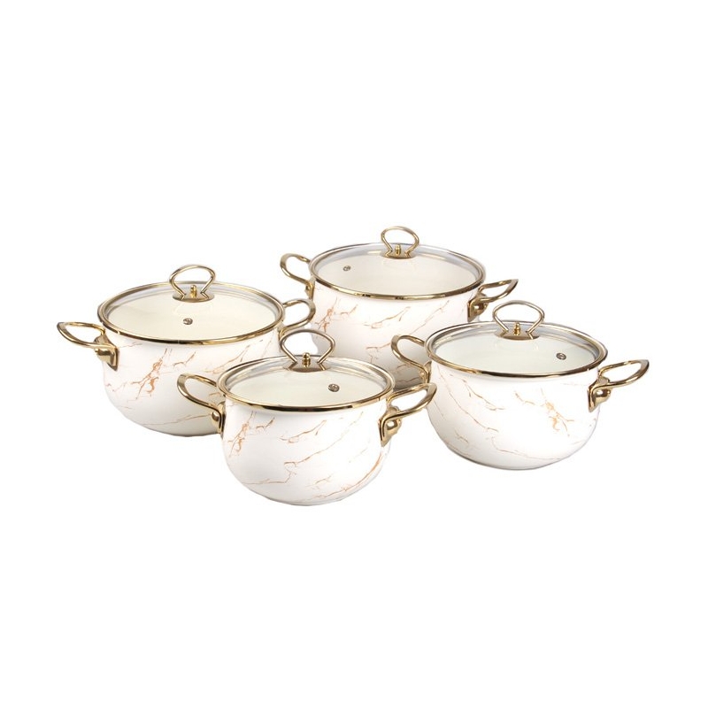 8-dílná sada smaltovaných hrnců zlatý mramor
