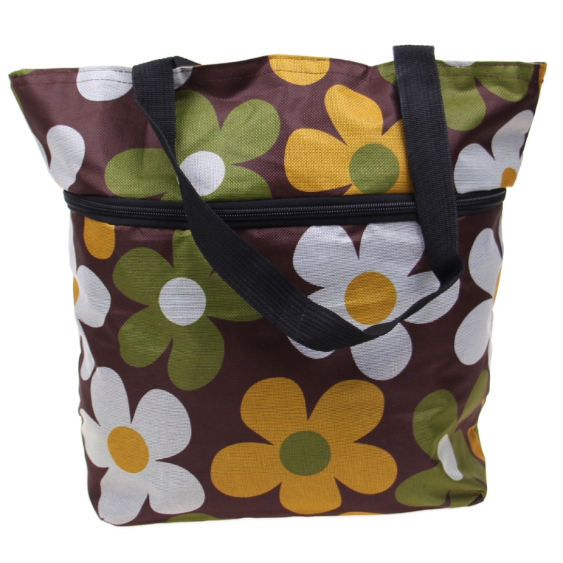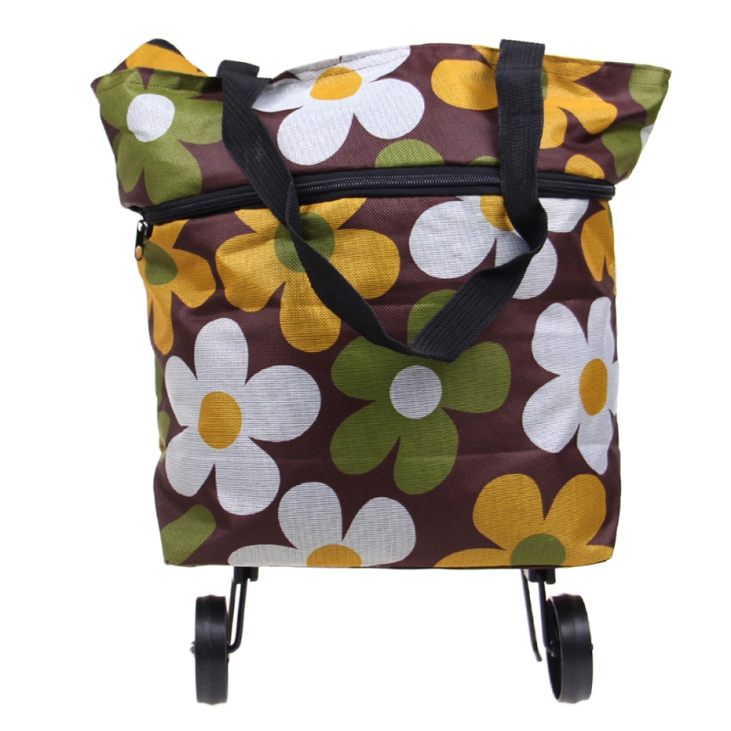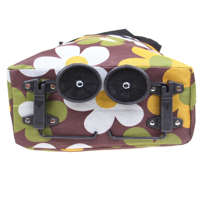 Nákupní taška s kolečky hnědá s květy