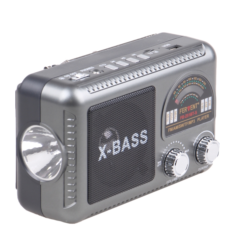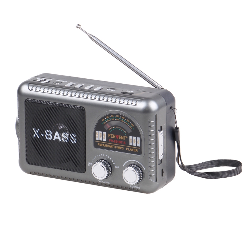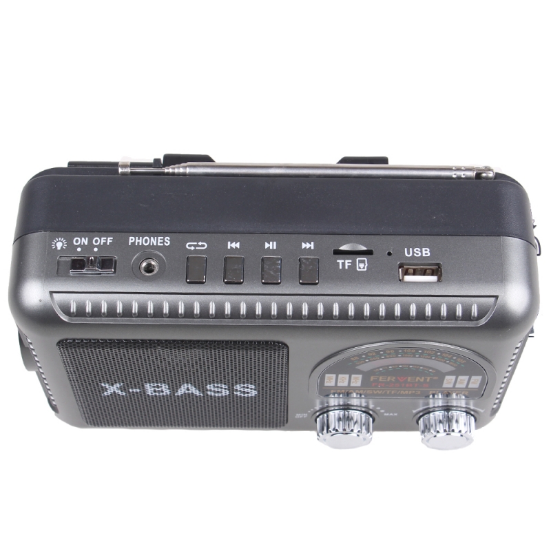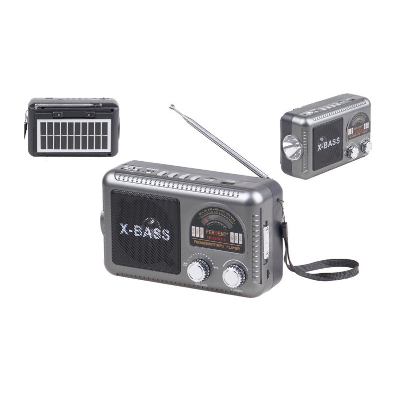 Solární 3pásmové rádio FERVENT šedé