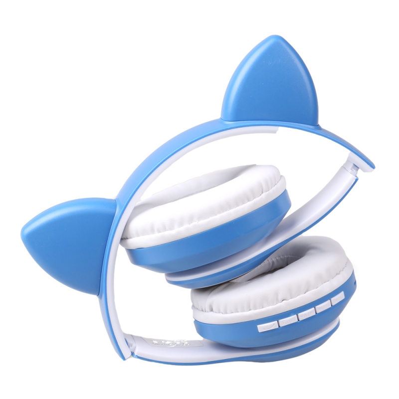 Bezdrátová sluchátka s kočičíma ušima modrá