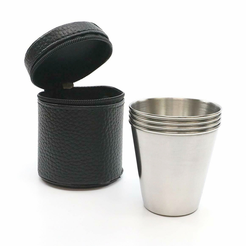 Sada cestovních nerezových panáků.