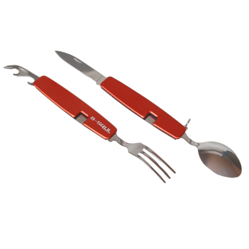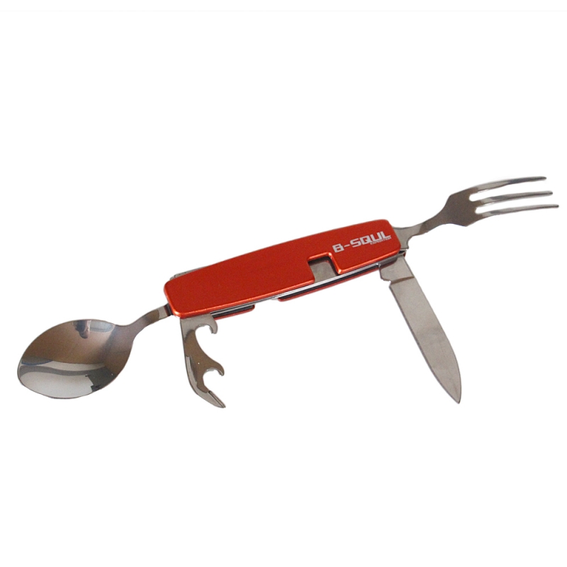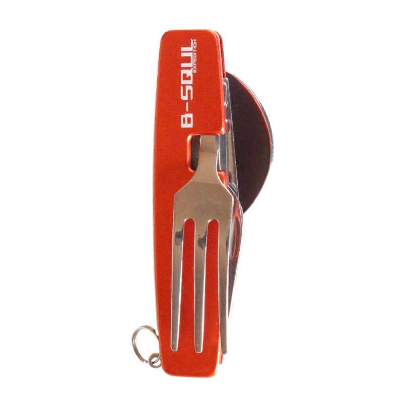 Rozkládací multifunkční kempingový příbor B-SQUL červený