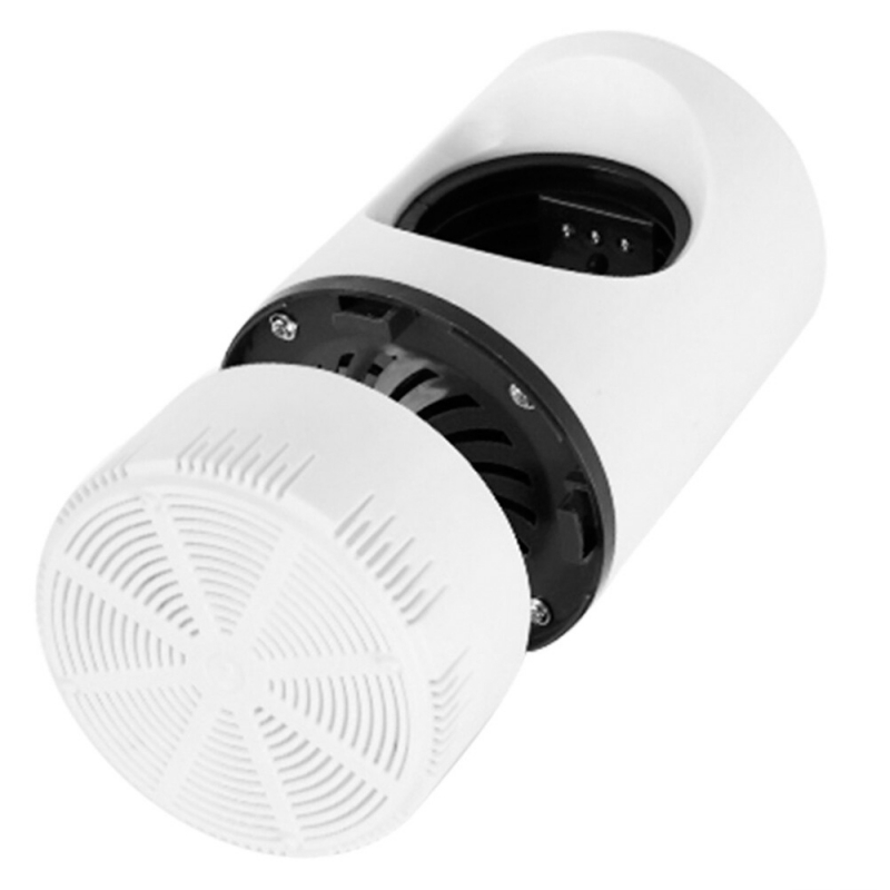 - Fialové světlo jej přitahuje a ventilátor je nasává do spodního dílu, kde se zachytí